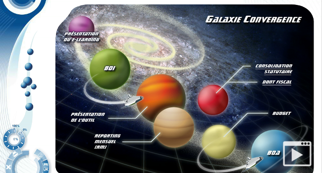 Sous la supervision d'un chef de projet, j'ai eu la responsabilité de concevoir et de réaliser des modules e-learning, sous Flash, en HTML et javascript et sous Macromedia Director.